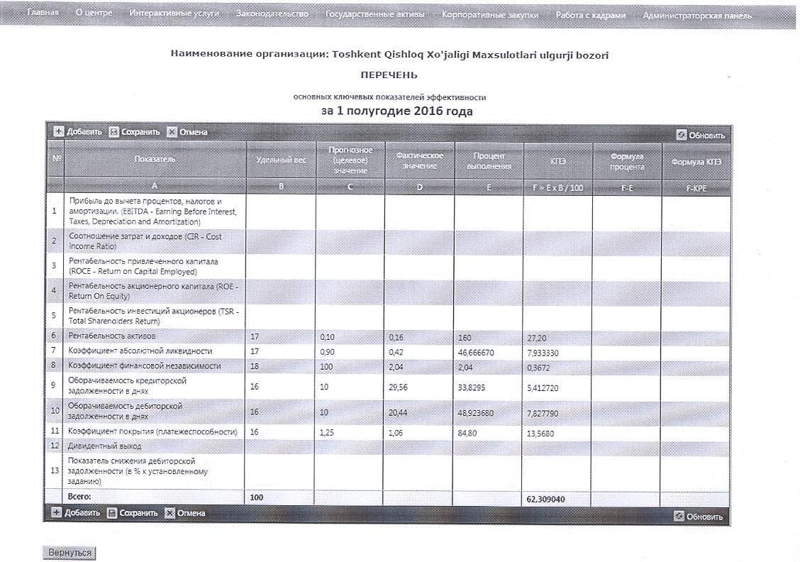 | Ключевые показатели эффективности за 1 полугодие 2016 года |